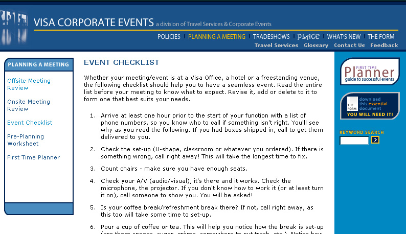Visa's Corporate Events division needed a website to provide access to critical company policies and departmental information related to meeting and event planning.